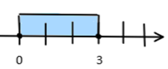 Przedział przedstawiony w tym podpunkcie mówi nam, że na osi należy zaznaczyć przedział zaczynający się w 0 oraz kończący się w 3. Można zapisać go w postaci nierówności jako