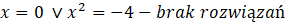 Zauważ, że nie istnieje liczba, której kwadrat jest liczbą ujemną. Więc drugie równanie nie ma rozwiązań.