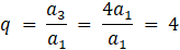 Zapisz związek pomiędzy sąsiednimi wyrazami ciągu geometrycznego i oblicz wartość poszczególnych wyrazów, aby na końcu obliczyć iloraz.