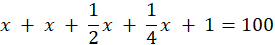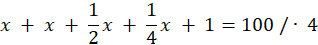 Niech x to będzie liczba gęsi w stadzie. Jakby dodać do niej jeszcze raz tyle, połowę, ćwiartkę i liczbę 1 to otrzymasz 100: