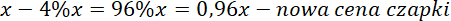 Oblicz, o ile procent więcej niż obecnie trzeba będzie zapłacić za dwie czapki i jeden szalik po zmianach w cenach.