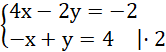 Rozwiązujemy układ metodą przeciwnych współczynników.