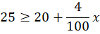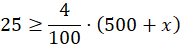 Zapisz w tabelce masy wody oraz soli w naczyniu przed i po dolaniu wody. Masę dolaną wody oznacz jako x. Zapisz nierówność, że masa soli po dolaniu wody ma stanowić więcej lub równo 4% masy rozcieńczonej solanki. Rozwiąż nierówność.