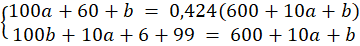 W tym zadaniu musisz podać liczę x, jeżeli jest ona trzycyfrowa oraz cyfra setek wynosi 6. Wiadomo również, że po zamianie miejscami cyfry setek i dziesiątek otrzymano liczbę stanowiącą 42,4% liczby x. Z kolei, gdy zamienimy miejscami cyfrę setek z cyfrą jedności otrzymana liczba jest o 99 mniejsza od liczby x.