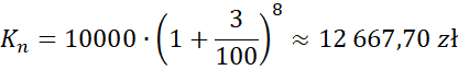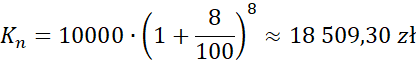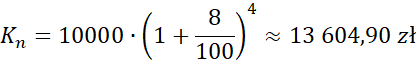 Ustal, ile zyska bank w ciągu czterech lat, a ile – w ciągu ośmiu lat, jeśli przyjął kwotę 10 000 zł na 3% rocznie i pożyczył ją na 8% rocznie.