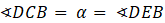 Kąty DCB i DEB są kątami wpisanymi, opartymi na tym samym łuku, więc ich miary są równe.