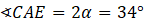 Zapisz równanie wynikające z sumy miar kątów w trójkącie dla trójkąta CAE. Z niego możesz wyznaczyć wartość