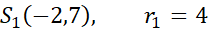 Wyznacz równanie prostej prostopadłej do podanej prostej przechodzącej przez środek okręgu i współrzędne ich przecięcia. Następnie zauważ, że uzyskany punkt jest środkiem odległości pomiędzy środkami obu okręgów. Na tej podstawie wyznacz środek okręgu będącego obrazem i zapisz jego równanie. Zauważ, że promień będzie miał taką samą długość.