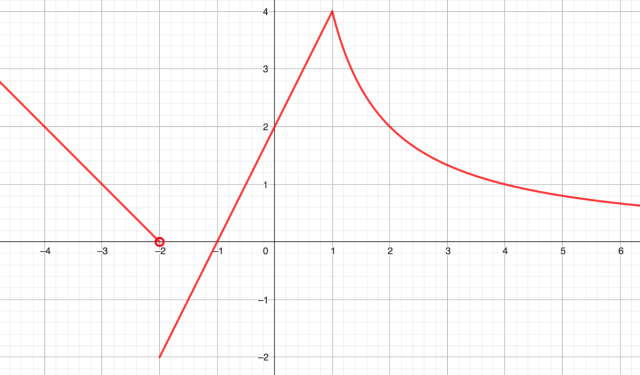Aby rozwiązać równanie musisz zobaczyć w ilu miejscach wykres funkcji f przecina się z prostą , dla danego m. Stąd:Dla wykres nie przecina się, zatem równanie to ma 0 rozwiązań. Dla wykres przecina się raz, zatem równanie to ma 1 rozwiązanie.Dla wykres przecina się 3 razy, zatem równanie to ma 3 rozwiązania.Dla wykres przecina się 2 razy, zatem równanie to ma 2 rozwiązania.Dla wykres przecina się raz, zatem równanie to ma 1 rozwiązanie.Zatem możesz zapisać funkcję jako: