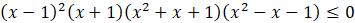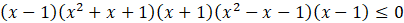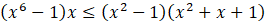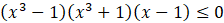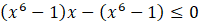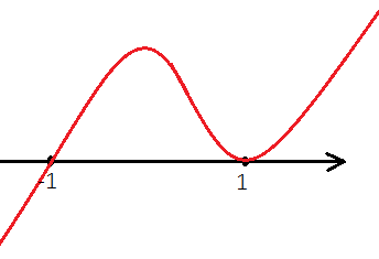 W pierwszym kroku rozwiązywania nierówności skorzystaj z jej prawej strony ze wzoru skróconego mnożenia na różnicę sześcianów. Następnie odejmij obustronnie wyrażenie x6 – 1 i wyłącz je przed nawias. Kolejno zastosuj następujące wzory skróconego mnożenia: wzór na różnicę kwadratów, różnicę sześcianów oraz sumę sześcianów. Otrzymasz postać iloczynową lewej strony nierówności, w której 1 jest pierwiastkiem parzystym, a -1 nieparzystym. Naszkicuj wykres otrzymanej funkcji. Szkicowanie zacznij od góry, ponieważ współczynnik a jest dodatni (zawsze rysowanie wykresu zaczynaj od prawej strony). Pierwiastek x = 1 jest parzysty, więc w tym miejscu wykres „odbija się” od osi OX. Drugi pierwiastek jest nieparzysty, więc dla niego wykres przecina oś OX.
