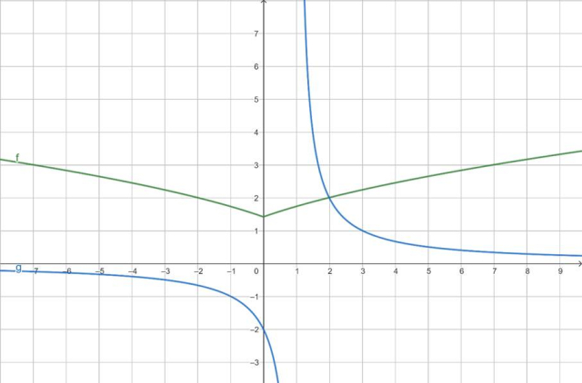 Wyznacz dla jakich z zielony wykres jest nad niebieskim.