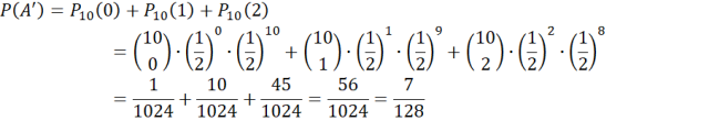 Wyznacz prawdopodobieństwo tego, że w dziesięciu rzutach monetą reszka wypadnie co najmniej 3 razy.