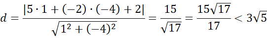 i ustal, czy odległość środka okręgu od podanej prostej jest większa, mniejsza czy równa długości promienia okręgu.