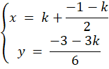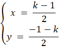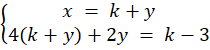Na początku z układu wyznacz wartości x i y zależne od parametru k, następnie podstaw wyliczony x i y do warunku.