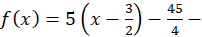 Wyznacz współrzędne wierzchołka, aby zapisać funkcję w postaci kanonicznej. Wyciągnij 5x przed nawias, aby wyznaczyć wzór funkcji w postaci iloczynowej.