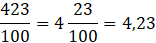 Zamień liczby z ramki na ułamki dziesiętne i usuń wszystkie niepotrzebne zera. Sprawdź, czy otrzymana liczba to 4,23.