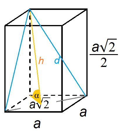 Aby wyznaczyć ten kąt, musisz znać wysokość przekroju. Do wysokości z przekroju musisz znać długość przekątnej ściany bocznej. Ją znów wyznaczysz z twierdzenia Pitagorasa.