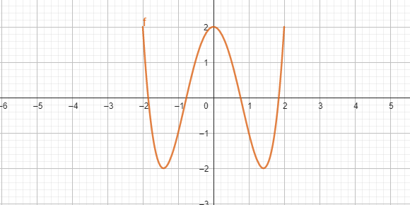 Długości boków prostokąta, w którym zawiera się ten wykres, możesz znaleźć, wyznaczając różnicę pomiędzy wartością najmniejsza i największą osiągana przez te funkcje na tym przedziale oraz odległość miedzy początkiem i końcem przedziału, na który funkcja jest określona. W tym przypadku jest to kwadrat o boku długości 4.