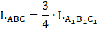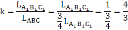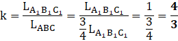 Trójkąt ABC jest podobny do trójkąta A1B1C1, przy czym obwód trójkąta ABC jest o 25% krótszy od obwodu trójkąta A1B1C1. Podaj, w jakiej skali trójkąt A1B1C1 jest podobny do trójkąta ABC.
