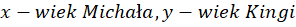 W tym zadaniu musisz podać wiek Michała i Kingi, jeżeli w zespole Kingi liczącym 4 osoby, bez niej, suma wszystkich lat jest równa 64. Z kolei w zespole Michała są 3 osoby, bez niego i mają razem 46 lat. Wiadomo, że średnia osób wszystkich osób jest równa 16 lat i to jest tyle samo ile średnia lat w obu tych grupach.