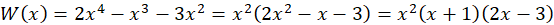 B. Jedynym pierwiastkiem wielomianu W(x) jest x = 0