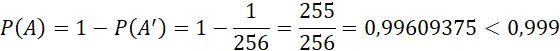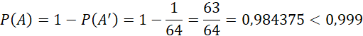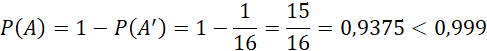 Oblicz prawdopodobieństwo rozpatrywanego zdarzenia dla kolejnych ilości losowań do momentu otrzymania wartości większej niż 0,999.