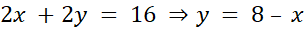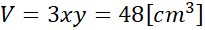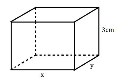 Z podanego warunku uzależniamy bok y podstawy prostopadłościanu od boku x. Wyznaczamy warunek, że każdy bok musi być dodatni i otrzymujemy dziedzinę funkcji pola powierzchni całkowitej, która z kolei tworzymy poprzez zsumowanie dwóch pól podstaw, dwóch pól bocznych przy podstawie x i dwóch pól bocznych przy podstawie y. Otrzymujemy funkcję kwadratową o ujemnym współczynniku kierunkowym, zatem jej maksimum będzie w jej wierzchołku. Objętość liczymy jako pole podstawy pomnożone przez wysokość.
