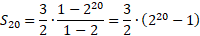 W tym zadaniu należy obliczyć sumę 20 początkowych wyrazów ciągu geometrycznego.