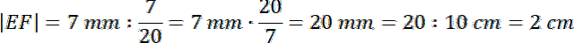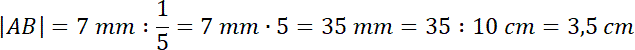 Zmierz widoczne na rysunku długości odcinków. Zamień procent na ułamek. Ułamek ten pokazuje, jaką częścią długości całego odcinka jest zmierzona długość. Aby otrzymać szukaną długość, podziel zmierzoną długość przez ułamek. Pamiętaj, że dzielenie przez ułamek to mnożenie przez jego odwrotność.
