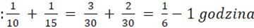 W tym zadaniu należy, obliczyć, ile czasu zajmie chłopcom wyplewienie całego ogródka, jeżeli będą pracować jednocześnie, jeżeli wiadomo, że Tomek i Janek plewią ogródek. Gdyby każdy z chłopców plewił sam, to Tomkowi zajęłoby to 10 godzin, a Jankowi - 15 godzin