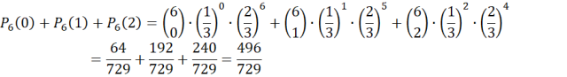 Wyznacz prawdopodobieństwo tego, że liczba oczek mniejsza od 3 wypadnie dokładnie 2 razy, jeśli rzucamy sześć razy kostką.