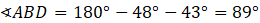 Kąt ABD to kąt wierzchołkowy do kąta EDF. Kąt EDF będzie różnicą sumy kątów w trójkącie i miarą kątów przyległych do kątów HEF i LFE.