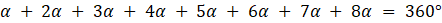 Okrąg został podzielony ośmioma punktami na łuki o stosunku długości 1:2:3:4:5:6:7:8. Podaj miary kątów ośmiokąta.