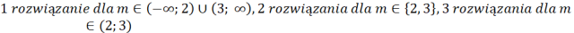 Równanie f(x)=m ma dwa rozwiązania w takim przedziale, w którym występują ramiona paraboli, 1 rozwiązanie na wysokości wierzchołka paraboli i brak rozwiązań tam, gdzie nie występują ramiona paraboli. Na podstawie wzoru