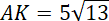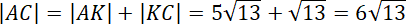 , aby znaleźć długość AK. Następnie oblicz |AC| wiedząc, że |AC| = |AK| + |KC|.
