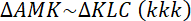Zauważ, że trójkąty AMK i KLC są trójkątami podobnymi na podstawie cechy kkk. Najpierw oblicz skalę podobieństwa