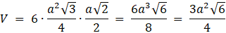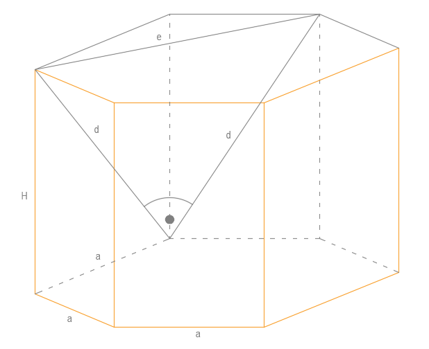 Dany jest graniastosłup prawidłowy sześciokątny o boku długości a. Przekątne poprowadzone po sąsiednich ścianach bocznych do jednego wierzchołka są do siebie prostopadłe. Znajdź jego objętość.