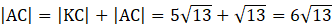 Teraz z twierdzenia Pitagorasa wyznacz AK, a potem KC.