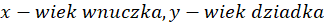 W tym zadaniu musisz podać wiek wnuczka za 13 lat, jeżeli stosunek wieku dziadka do wieku wnuczka wynosi 1:10. Wiadomo również, że za 8 lat będą mieli razem 82 lata.