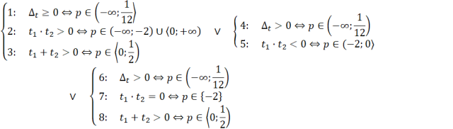 Jednym z zestawów rozwiązań są jedno lub dwa rozwiązania dodatnie. Zmienna pomocnicza przyjmuje tylko wartości większe od zera, dlatego ujemne rozwiązania nie są brane pod uwagę. Skorzystaj w tym celu ze wzorów Viete’a: