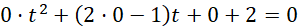 W trzecim przypadku wśród dwóch rozwiązań jedno jest zerem. Wtedy, jako że zmienna 𝑡 przyjmuje wyłącznie wartości większe od zera, tylko jedno rozwiązanie w 𝑡 da rozwiązanie w 𝑥: