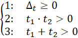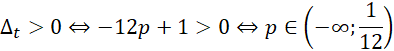 Jest również możliwa druga sytuacja: równanie kwadratowe ma dwa rozwiązania o różnych znakach. Wtedy, jako że zmienna 𝑡 przyjmuje wyłącznie wartości większe od zera, tylko jedno rozwiązanie w 𝑡 da rozwiązanie w 𝑥. Drugi zestaw warunków przyjmuje więc postać: