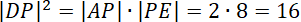 Zauważ, że trójkąty DPE i APS są podobne na podstawie cechy kkk. Oblicz długość |DP| korzystając z faktu, że