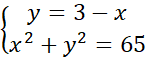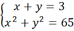 Wyznacz dwie liczby, których suma jest równa 3 oraz suma ich kwadratów jest równa 65.