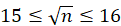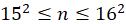 Czyli liczby n, które spełniają ten warunek to liczby od 225 do 256. Takich liczb jest 32.