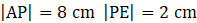 W prostokącie ABCD poprowadzono odcinek AE, który jest prostopadły do przekątnej DB. Punkt E należy do boku DC prostokąta. Przekątna DB przecina odcinek AE w punkcie P. Wiadomo, że długość odcinka AP wynosi 8 cm, a długość odcinka PE wynosi 2 cm. Oblicz długość przekątnej i boki danego prostokąta.