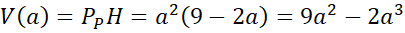 Na podstawie podanej sumy krawędzi wyznacz długość wysokości oraz oblicz dziedzinę. Następnie pod wzór na objętość graniastosłupa podstaw znane wartości, zauważ, że powstanie funkcja zmiennej
