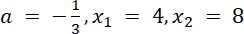 Dany jest współczynnik a i miejsca zerowe funkcji kwadratowej. W tym zadaniu musisz zapisać wzór tej funkcji w postaci iloczynowej.
