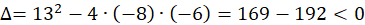Oblicz deltę. Zauważ, że jest ona mniejsza od 0, a cała parabola znajduje się pod osią OX, czyli
