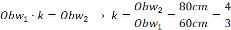 Obliczmy skalę podobieństwa k ze znanych wartości obwodów: